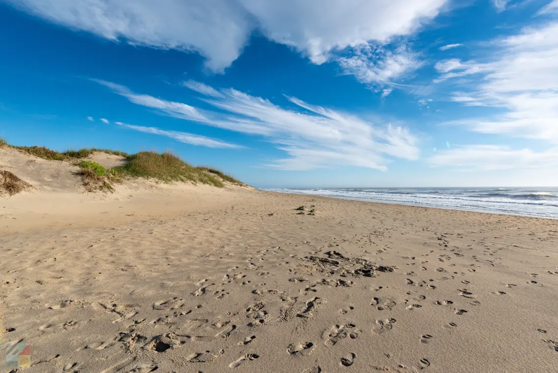Coquina Beach sits a little apart from the busiest stretches of the Outer Banks, and that separation defines the experience. Getting there already feels different. The road cuts through dunes and grasses, and by the time you park, the noise of everything else has faded.